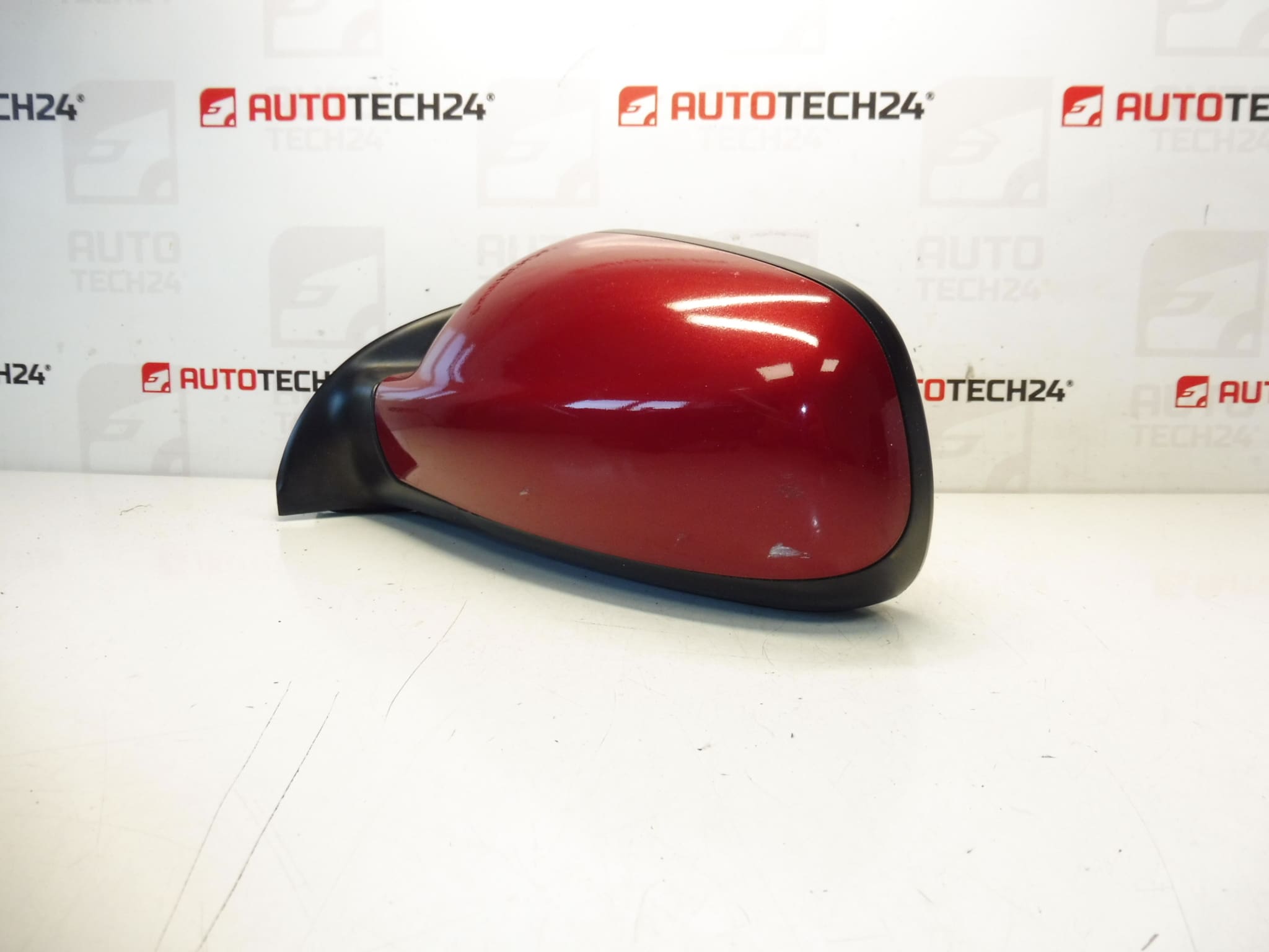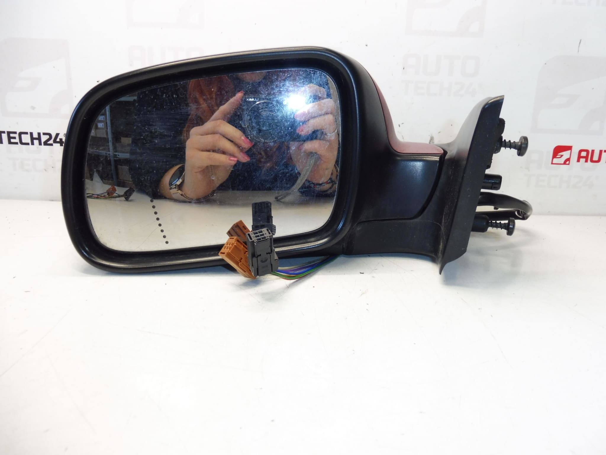Oikeanpuoleinen matkustajan taustapeili Peugeot 307 -autoihin. Sähköisesti säädettävä ja lämmitettävä, sähköisesti taittuva, lämpötilanturi. Väri LKR – maalattu Babylonin punainen. 8-nastainen liitin (6+2).